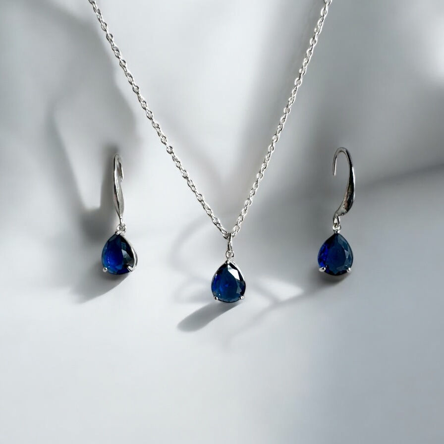 Sapphire Tears Necklace Set